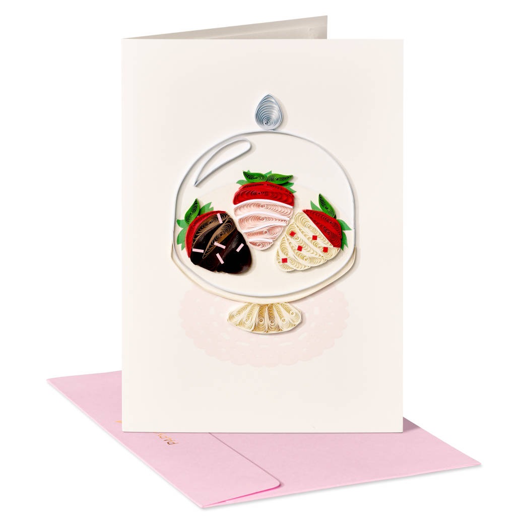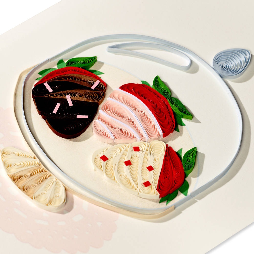 • This Papyrus card features an intricate quilling design with foil accents, showcasing a beautiful assortment of chocolates.