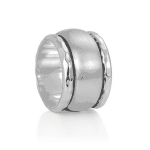 Sterling Silver Meditation Ring with hammered shiny edges complimented by large smooth brushed spinning band.